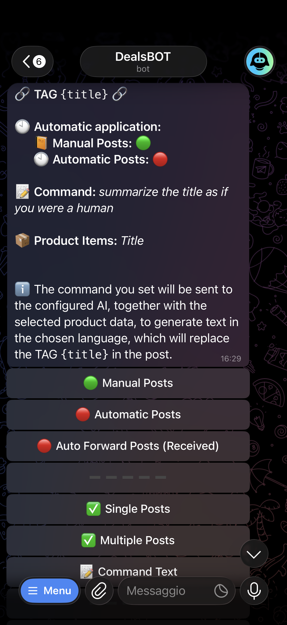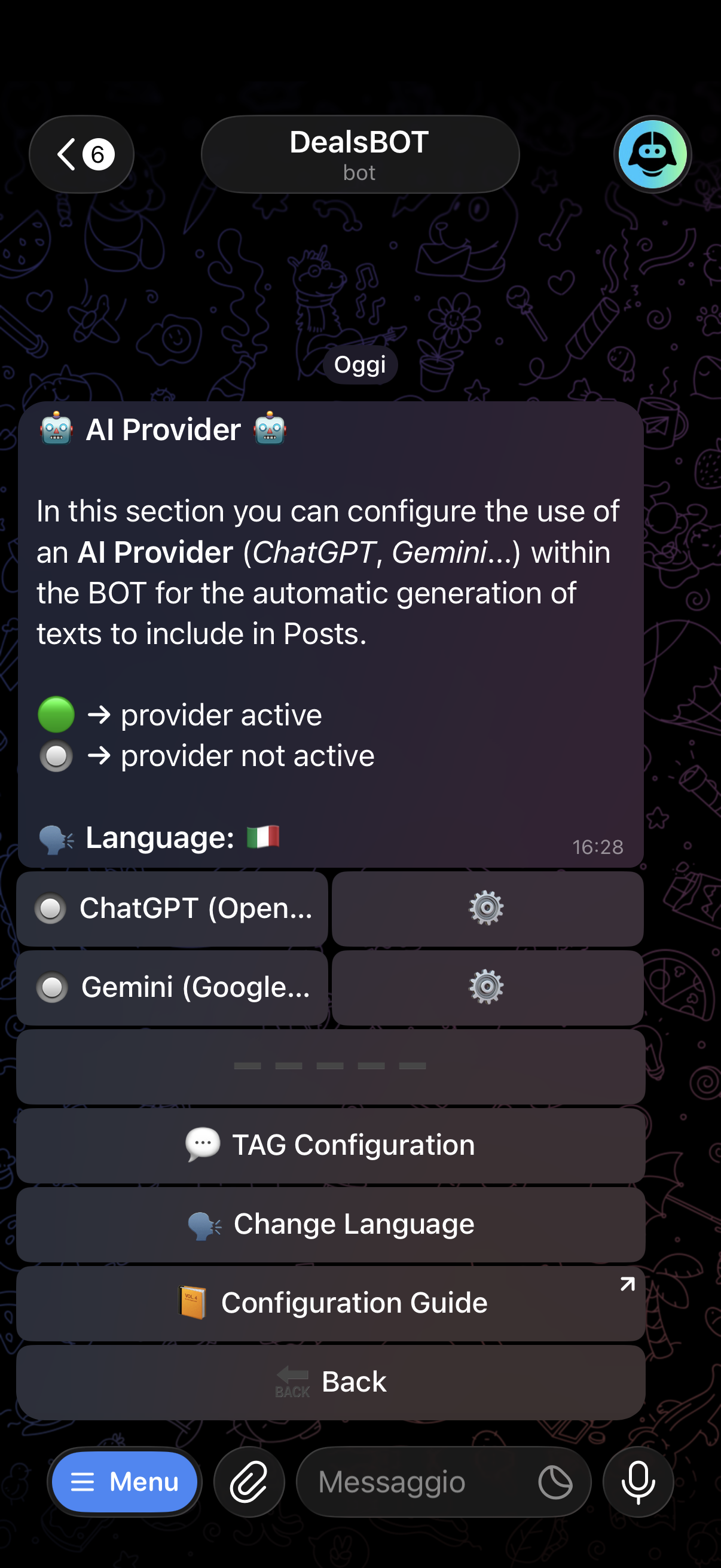 By connecting the BOT to OpenAI or Google Gemini, every post is enriched with automatically generated text and emoji in your personalised style.