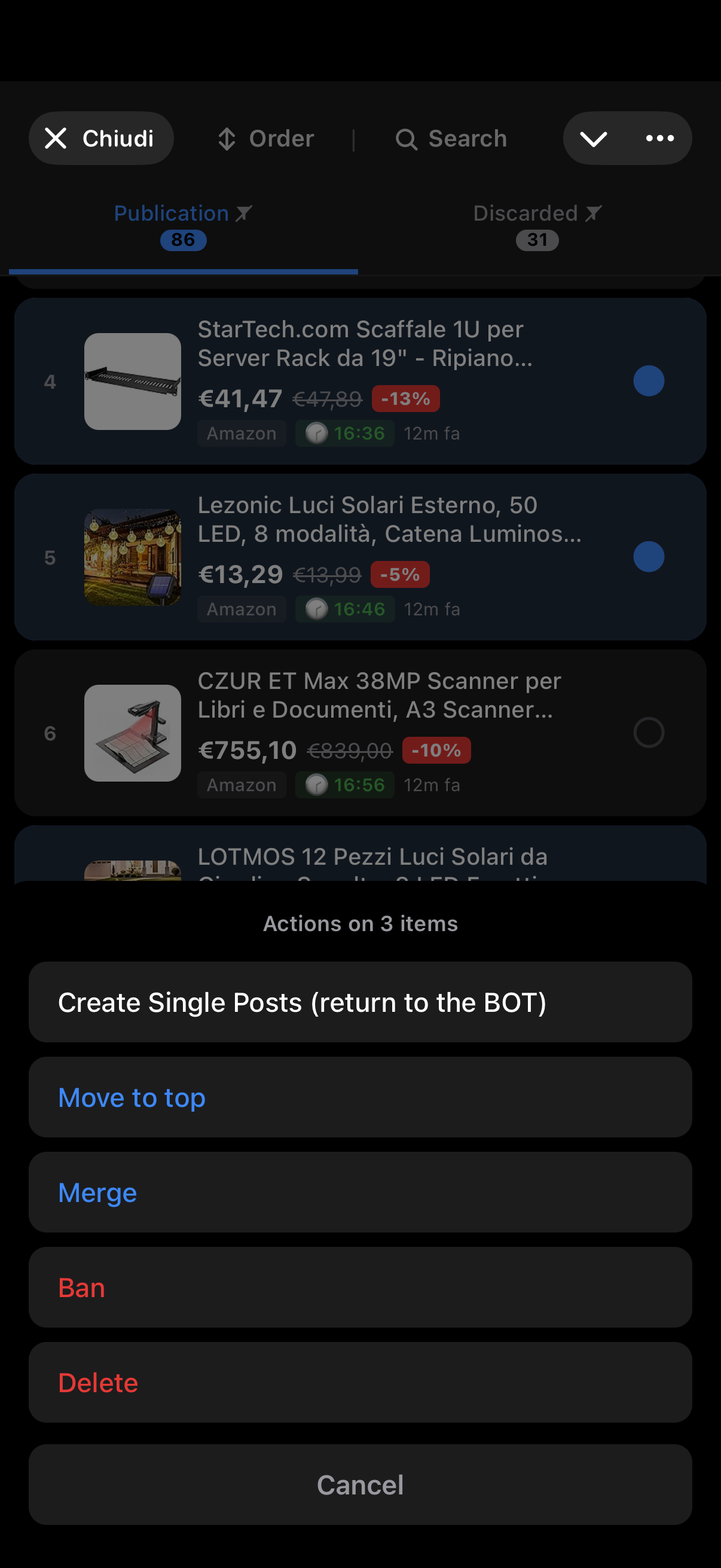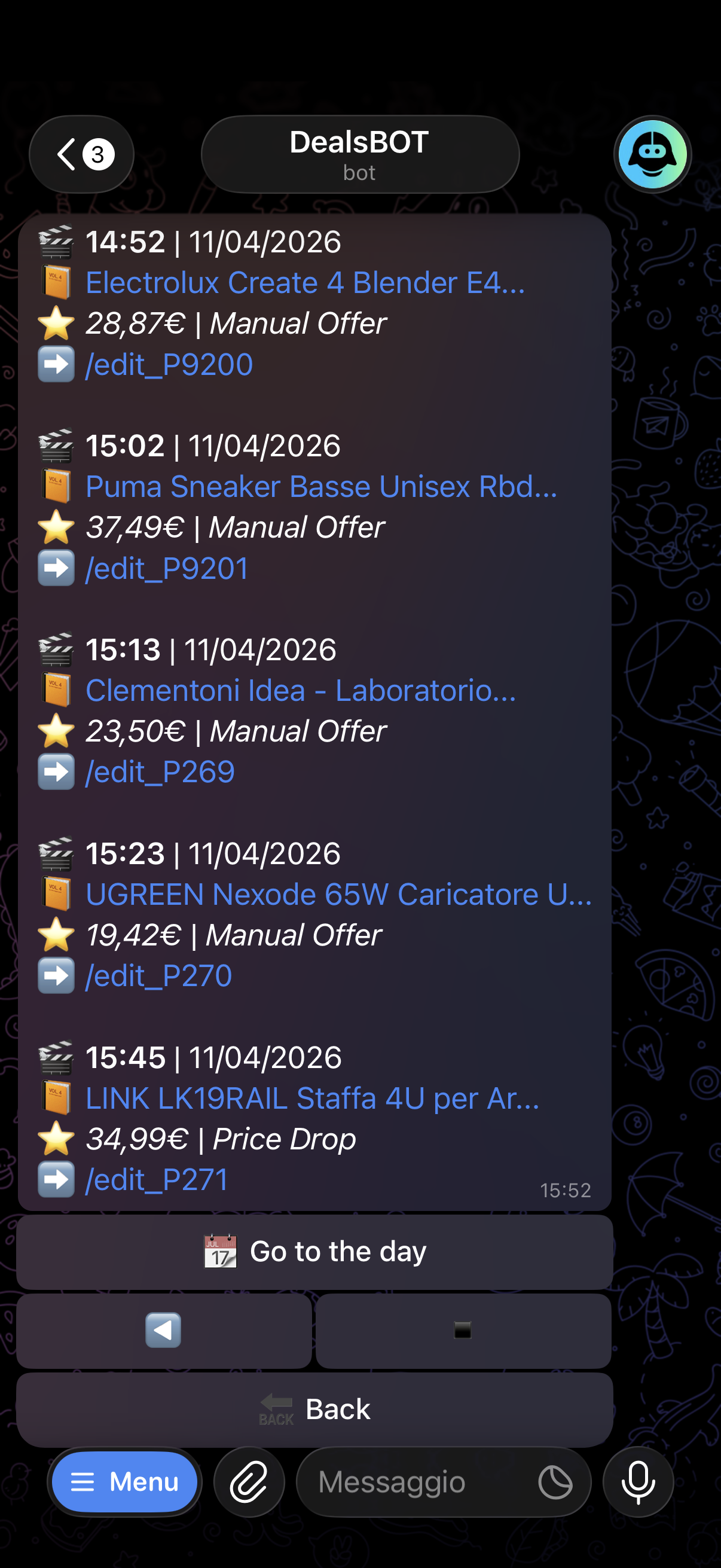 View pending deals, edit, reorder or remove them directly from the bot — without interrupting automation.